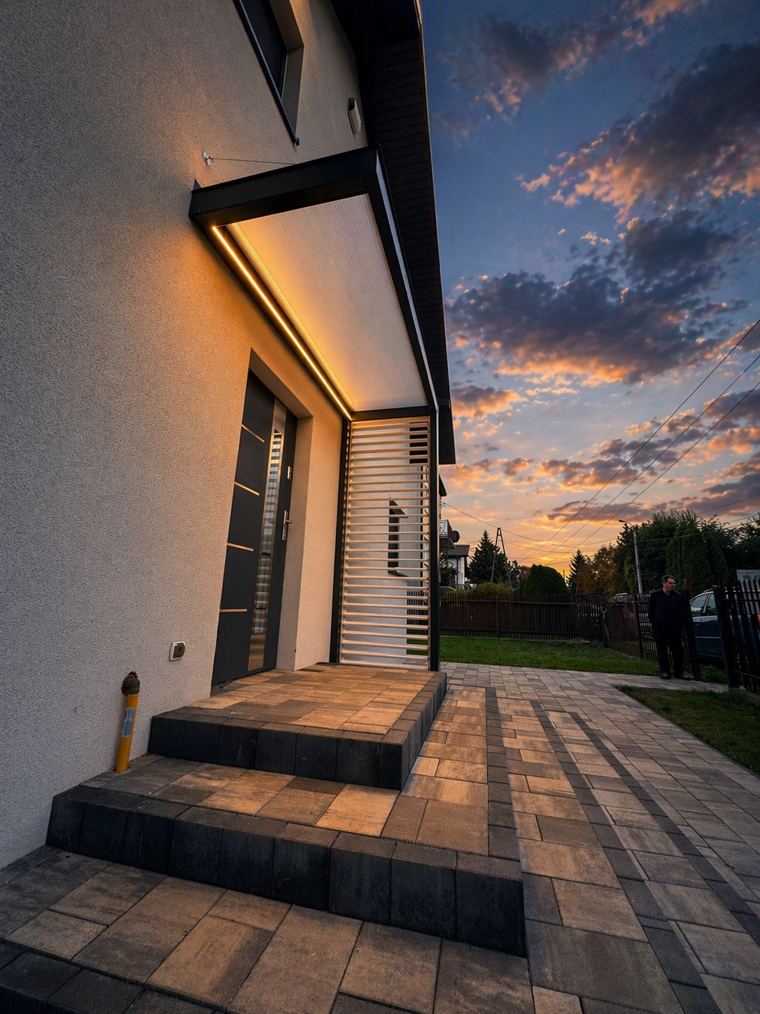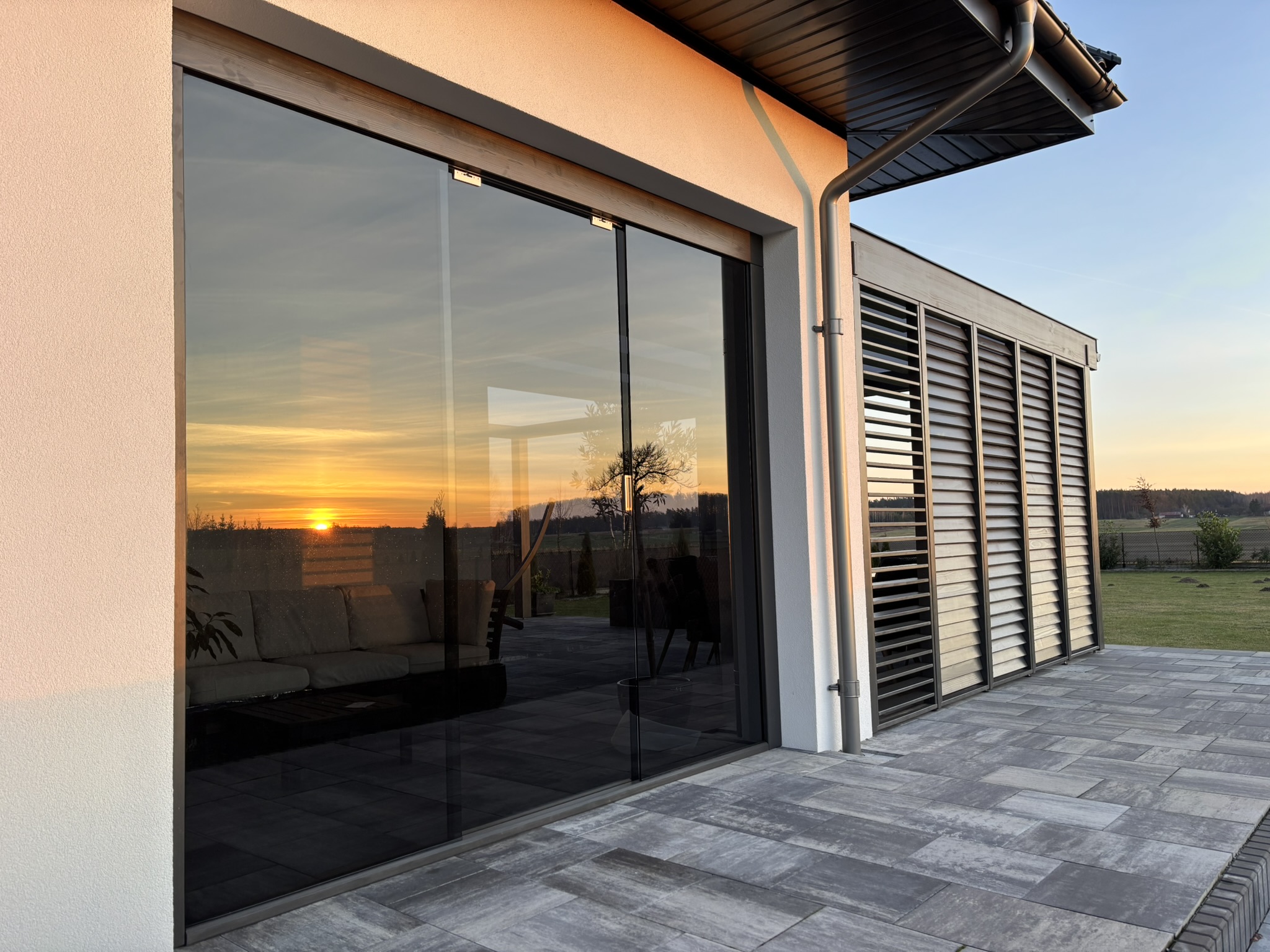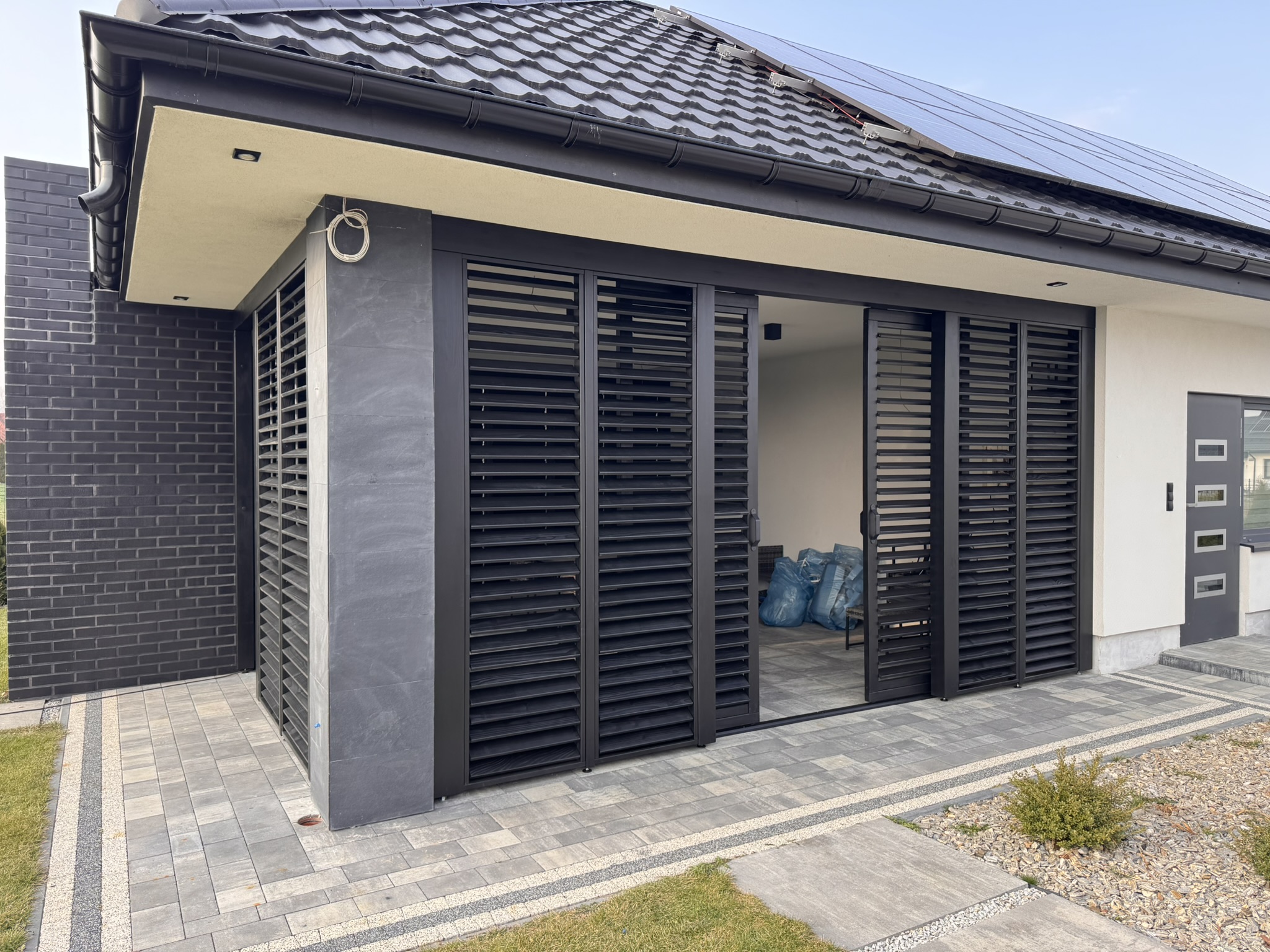 ZADASZENIA – Stylistyka naszych zadaszeń współgra zarówno z budynkami nowoczesnymi, jak i tymi bardziej klasycznymi o różnorodnej kolorystyce. Motyw przewodni to ukryty kąt nachylenia połaci, sprawiający że zewnętrzny obrys konstrukcji biegnie w linii poziomej tworząc przy tym jednorodną bryłę. Brak wsporników przy ścianie to lepsze zagospodarowanie przestrzeni, a masywne elementy konstrukcji nadają całości charakteru.