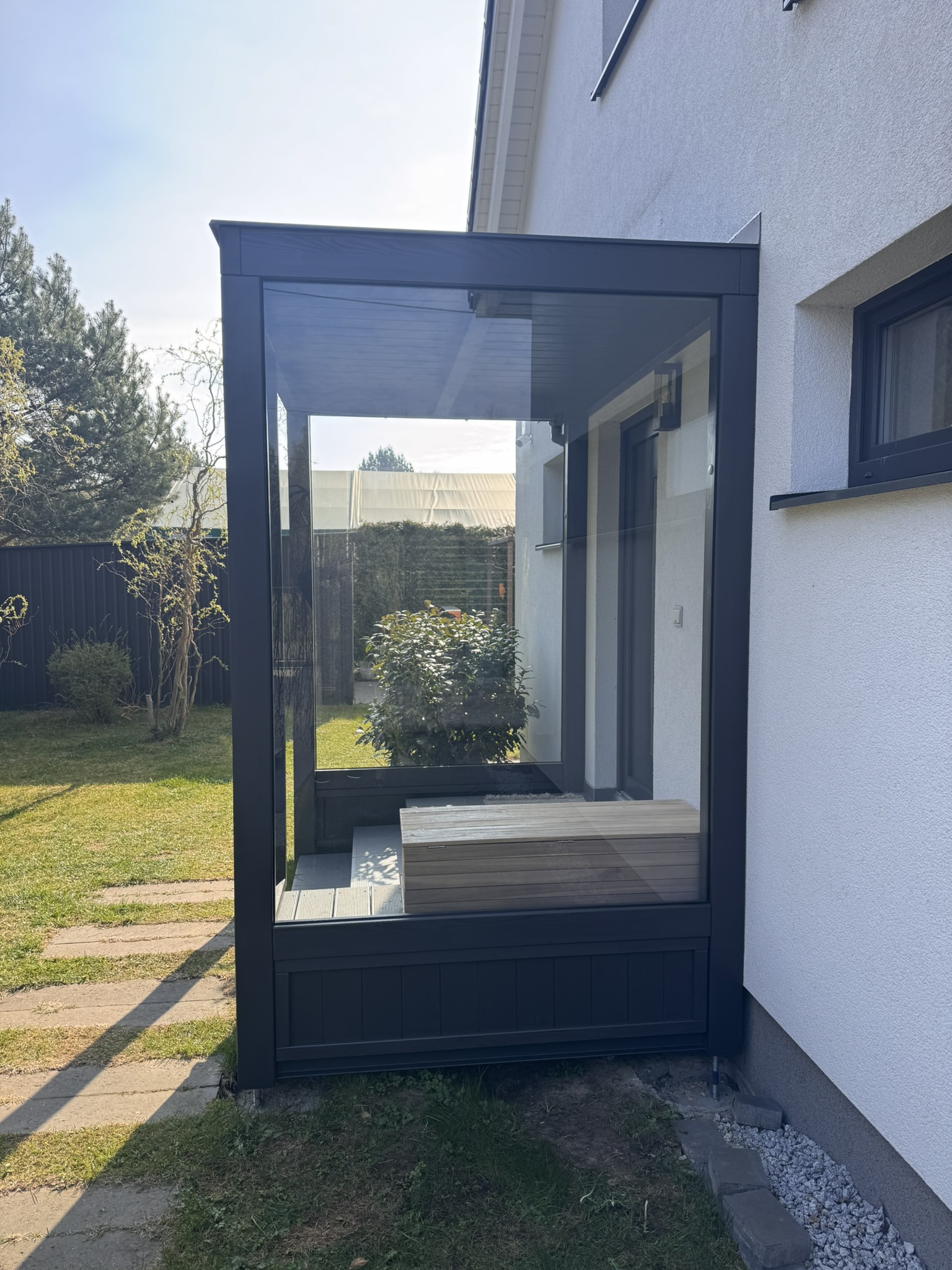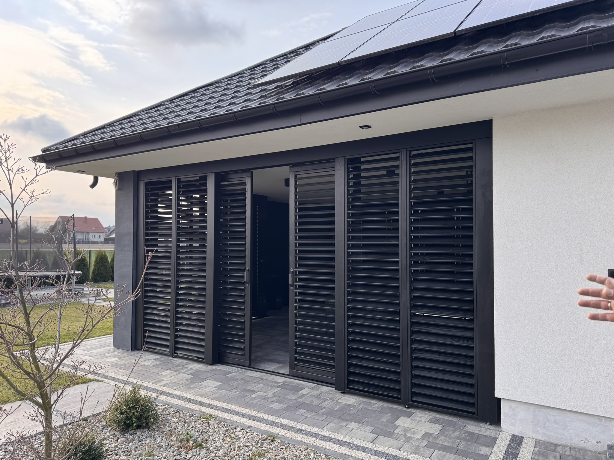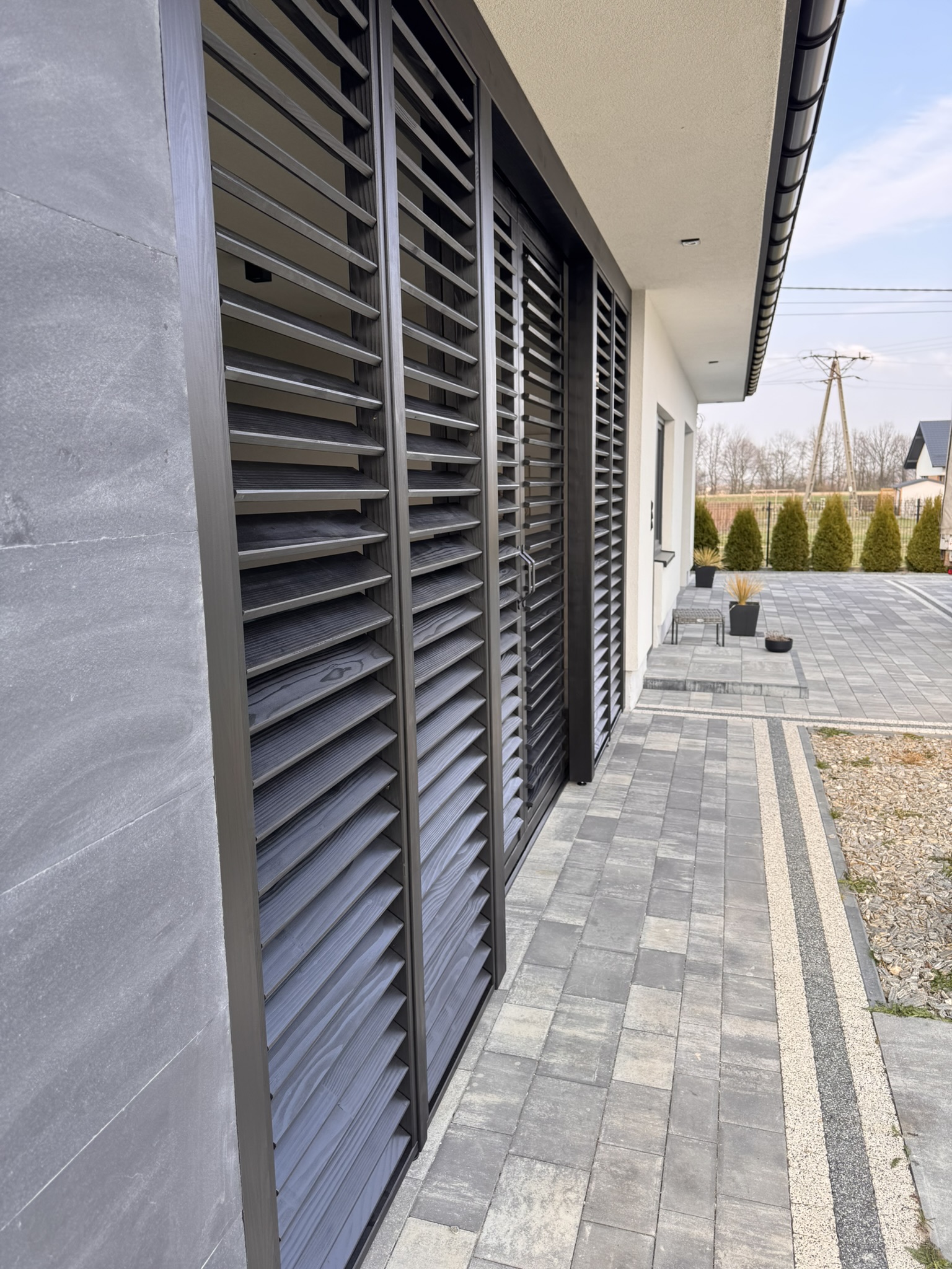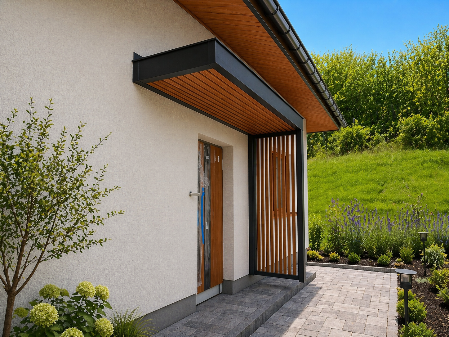 ZADASZENIA – Stylistyka naszych zadaszeń współgra zarówno z budynkami nowoczesnymi, jak i tymi bardziej klasycznymi o różnorodnej kolorystyce. Motyw przewodni to ukryty kąt nachylenia połaci, sprawiający że zewnętrzny obrys konstrukcji biegnie w linii poziomej tworząc przy tym jednorodną bryłę. Brak wsporników przy ścianie to lepsze zagospodarowanie przestrzeni, a masywne elementy konstrukcji nadają całości charakteru.