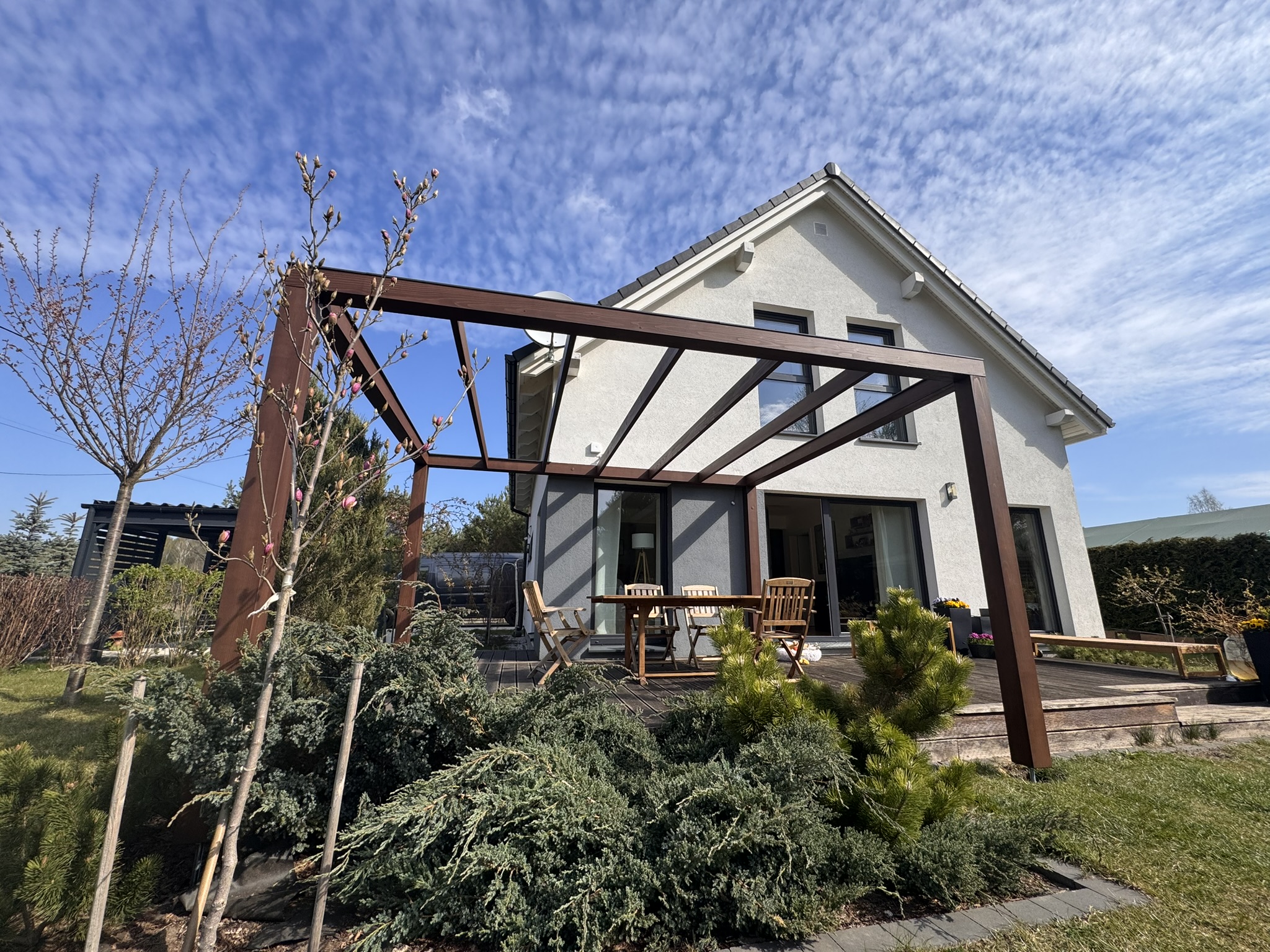 Wykorzystujemy wyłącznie drewno konstrukcyjne BSH i KVH. Dodatkowo każda nasza konstrukcja charakteryzuje się zwiększonymi wymiarami poprzecznymi elementów, co gwarantuje trwałość, solidność oraz atrakcyjny wygląd.